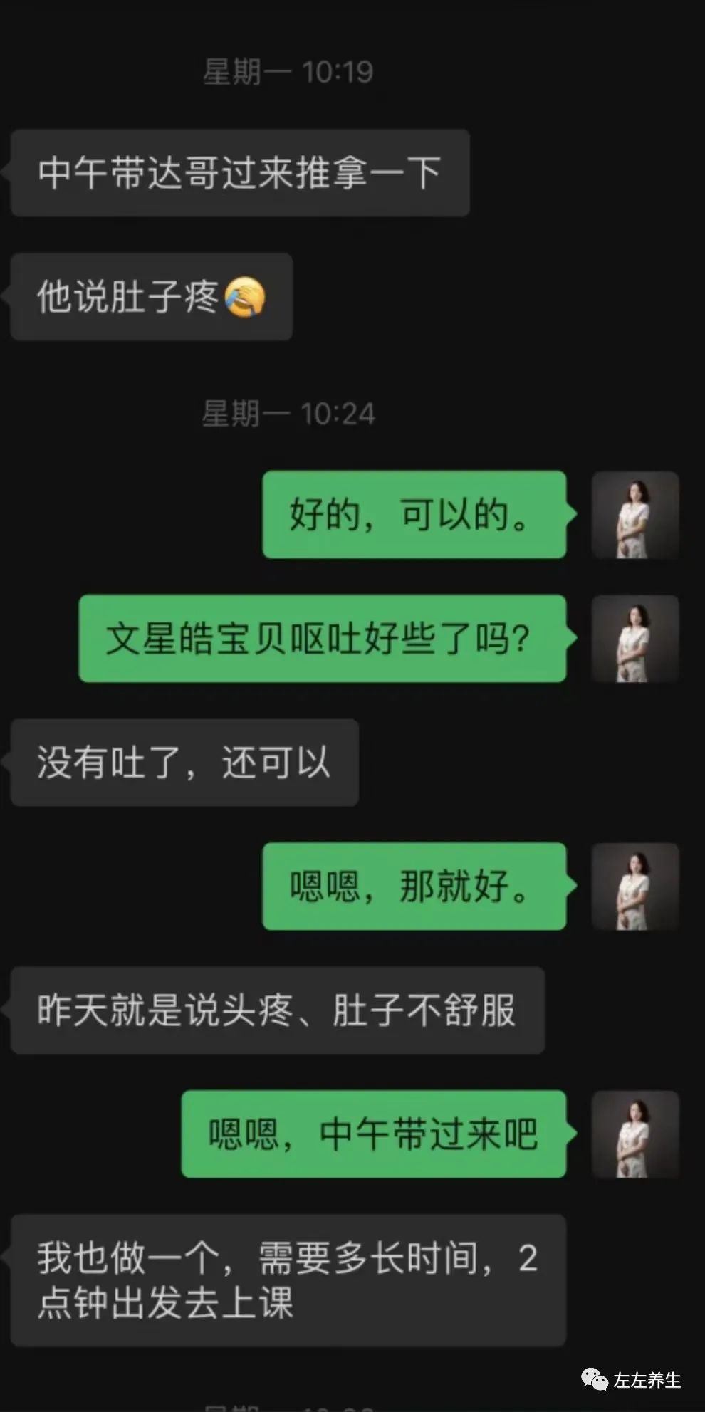机缘巧合,同学家长黄女士有一次去学校接人,看到了皓皓唇炎、嘴巴总是高频率抽动,热心问卢女士情况,并建议卢女士带皓皓来工作室调理一下。黄女士是工作室老客户,也是原始点忠粉,与之有关的调理案例,详情可点击链接:高烧12天、咳嗽一个月的案例