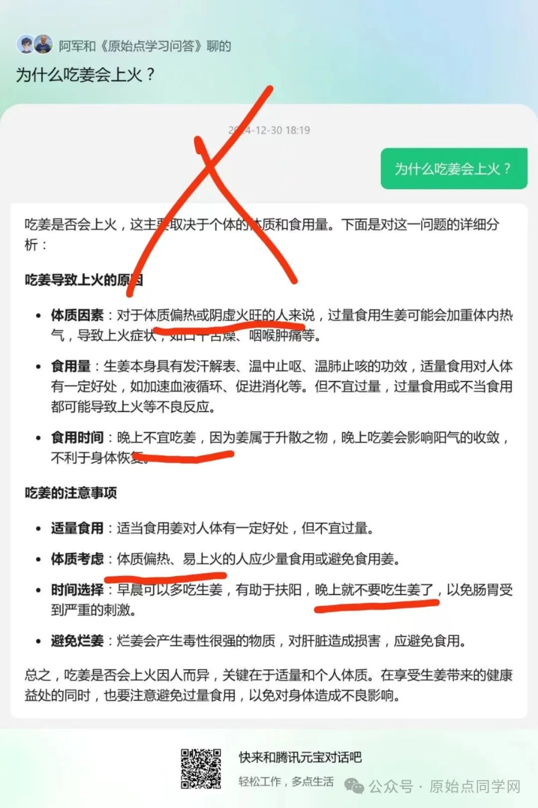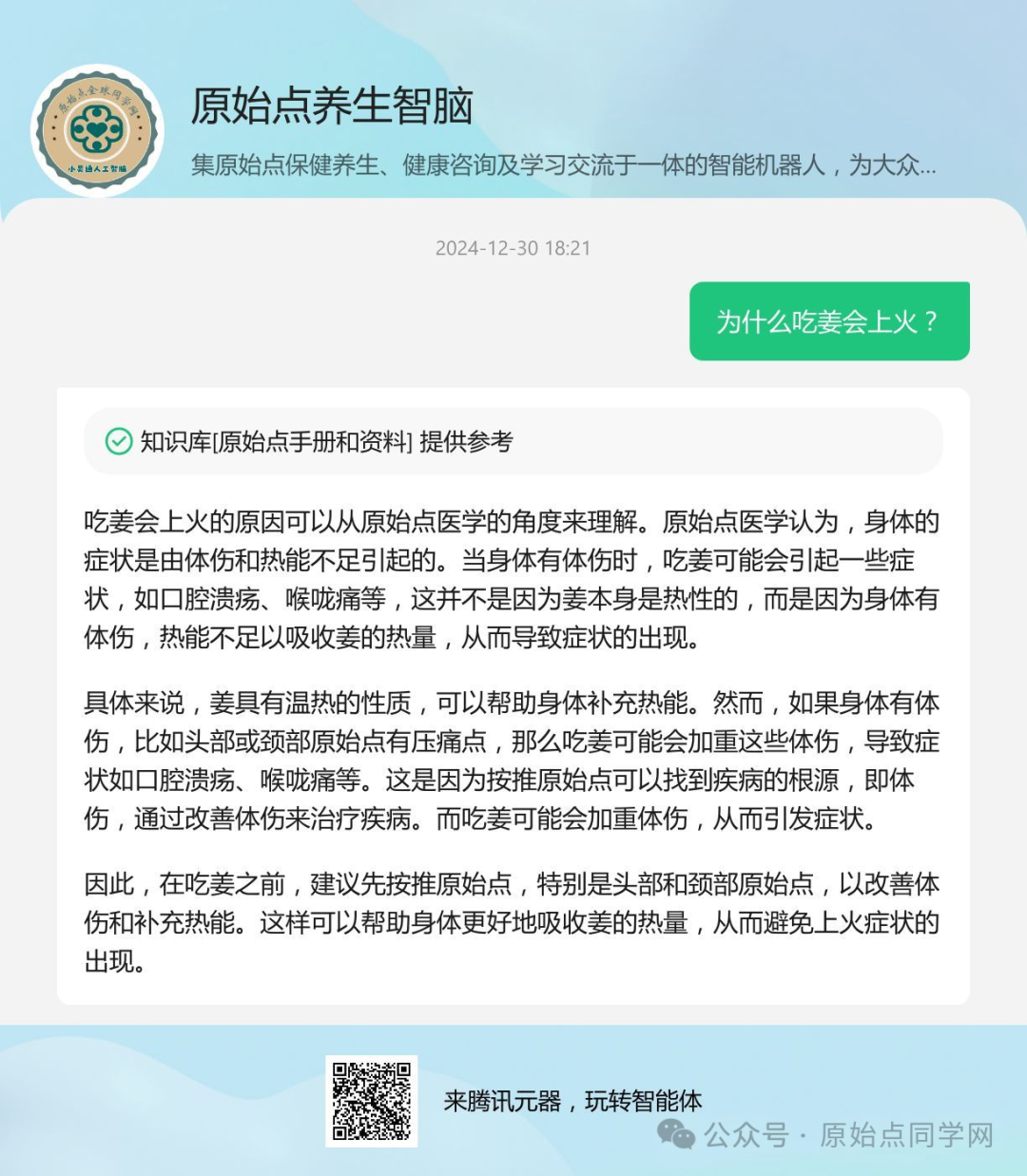 2 同学网 原始点养生智脑(腾讯混元大模型):★★ 符合原始点教义