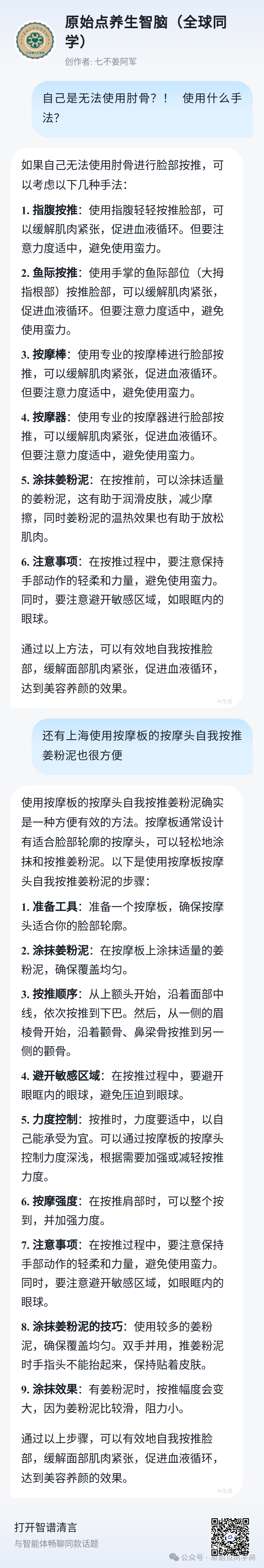 自己是无法使用肘骨?! 使用什么手法? →点击查看智谱清言智能体「原始点养生智脑(全球同学)」的回答https://chatglm.cn/share/F3ISB