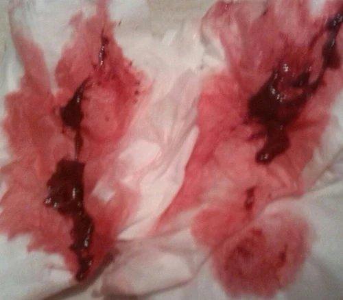 8月10—15日每天都排出少量的淡淡的血。10日到12日每天腹部都有些痛。每天用原始点来解决症状。每天按揉原始点二到三次,姜用量每天1.5斤,温敷15—20小时。