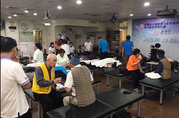此外,我们也目睹了基金会的师兄师姐们是如何无微不至的照顾在场的每一位学员,他们简直是把学员视为亲人一般的体贴与呵护,没有分别心,这无私的爱心,把旁观的我们都融化了!学员与家属们也非常的信任与敬重志工,当然,这与志工们能够以精练的手法为他们解症这关键是密不可分的。志工之间协作得非常融洽,工作有序;学员与家属们都非常听话的用心学习,学员之间也会互相帮忙。整个场地虽然人多却不吵杂,而且温情随处可见。公益性的基金会在运作上非常细心照顾每一个区块,例如中午12点准时开饭用美味的温热性午餐;12:30~1:30午休时间,全场关灯休息;1:30~2:00大家一起跟着视频跳郑多燕韵律操;全天都提供热姜汤让大家补充热能,甚至还有浓姜汤供应重病学员;重病学员运动时,都有资深志工陪伴。