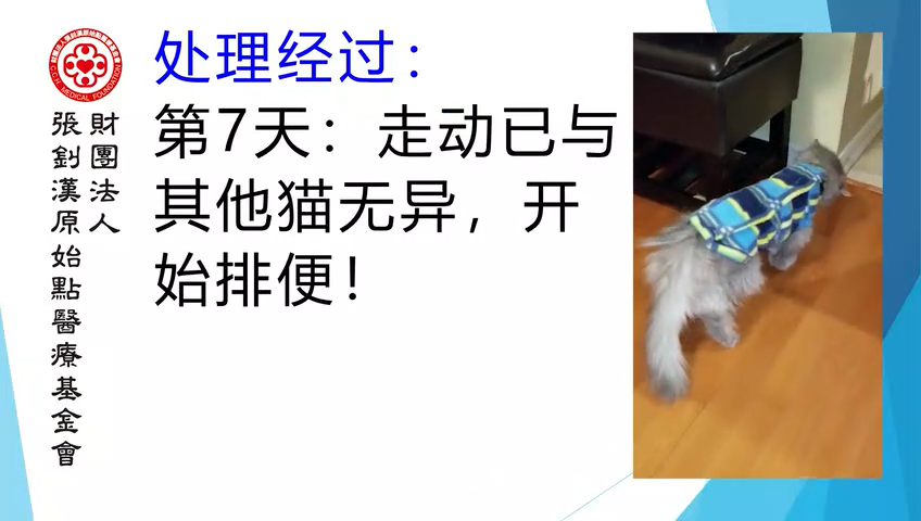 处理经过第9天:大致恢复正常 精神好很多,能自行跳上离地近40公分的玩具屋非常活泼。
