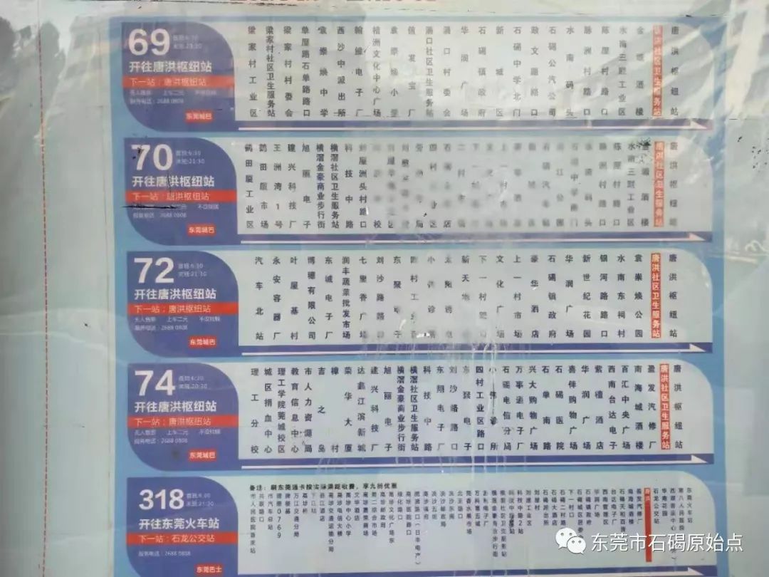 2、石碣公交(唐洪社区卫生服务站):69、70、72、74、318