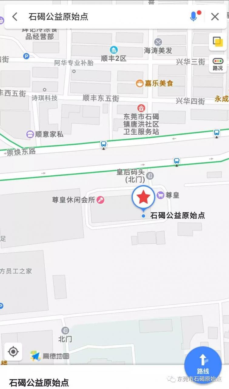 在地图(百度地图、高德地图、腾讯地图)搜“石碣公益原始点”或者“皇后码头”(在同一幢楼)即可。