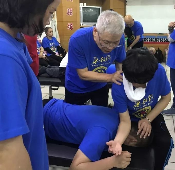 张医师不辞辛劳,白天讲课晚上还要铺导学员手法。