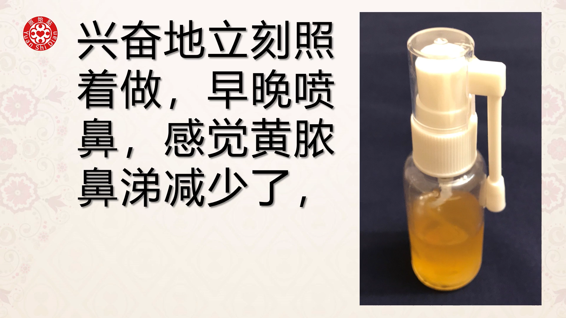 很幸运的是,我接触了原始点,才知道了什么叫热能不足及服用药物的副作用,兴奋地立刻照着做,早晚喷鼻,感觉黄脓鼻涕减少了