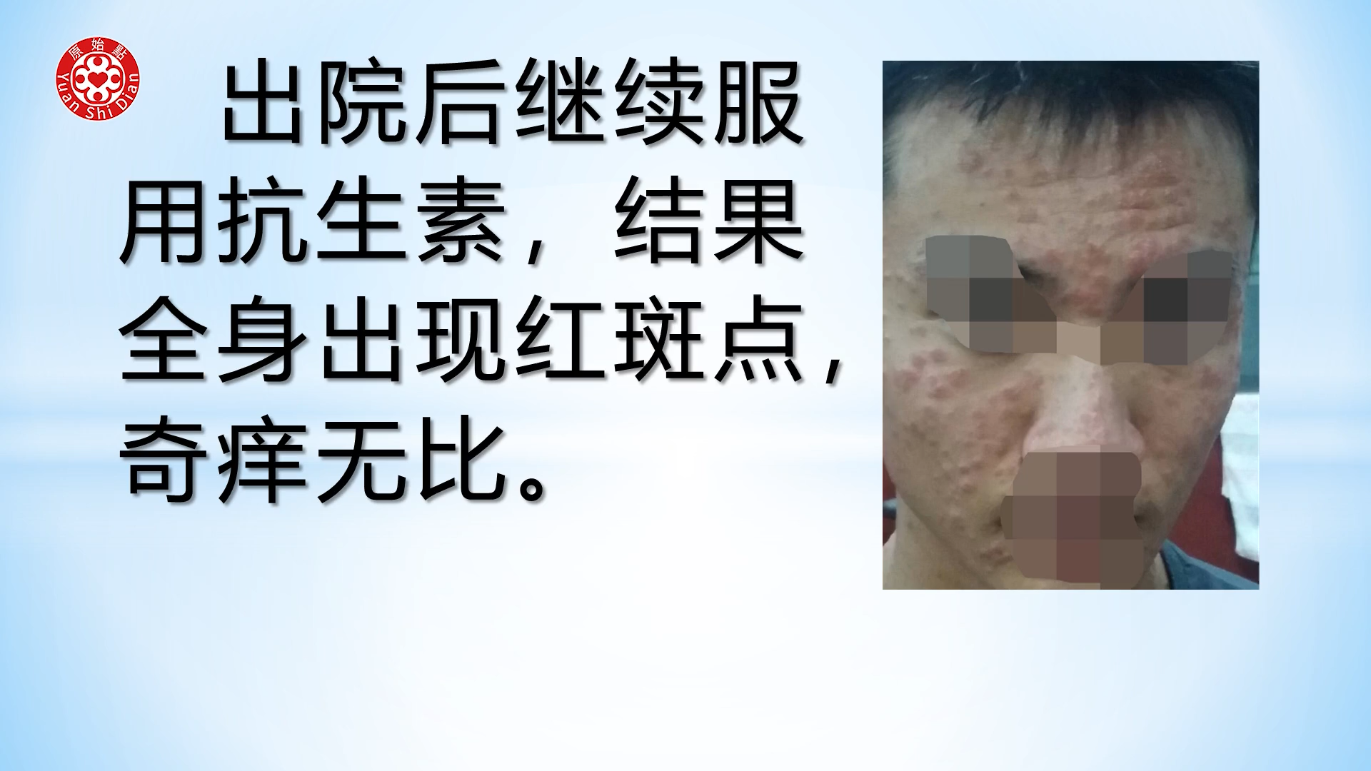 出院后继续服用抗生素,结果全身出现红斑点,奇痒无比。