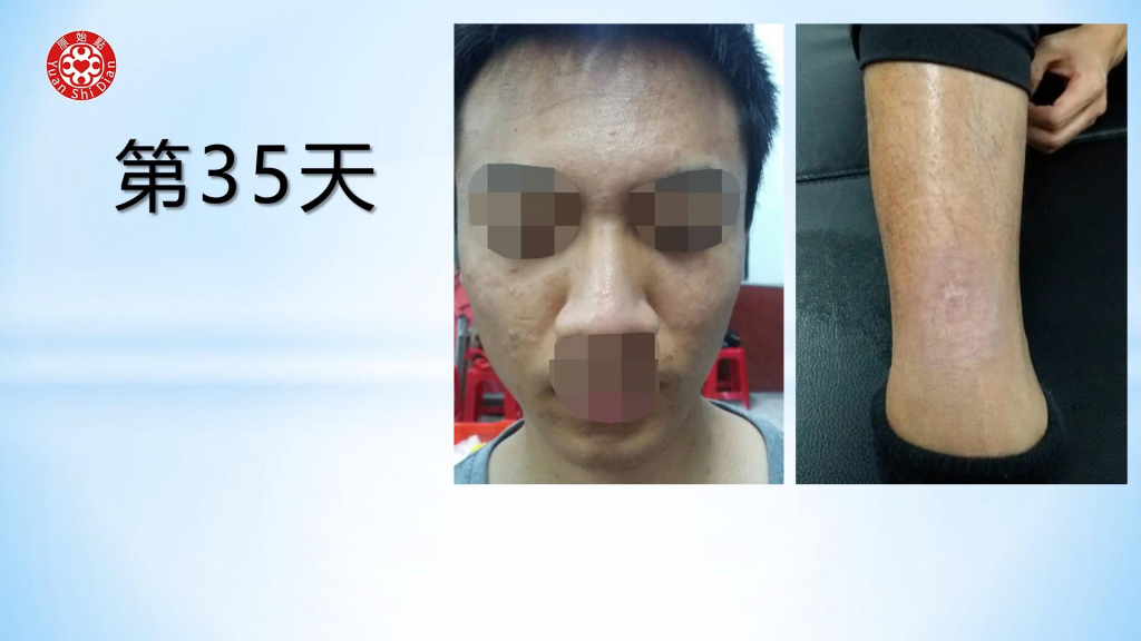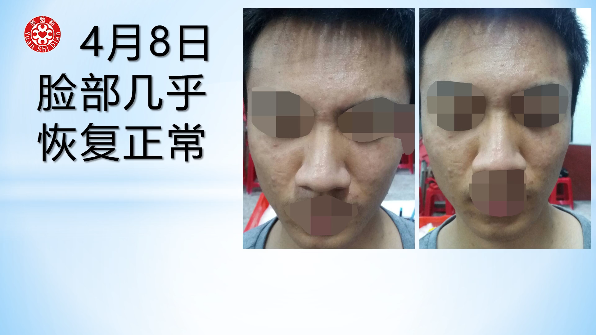 4月8日脸部几乎恢复正常 脚上伤口结痂脱落