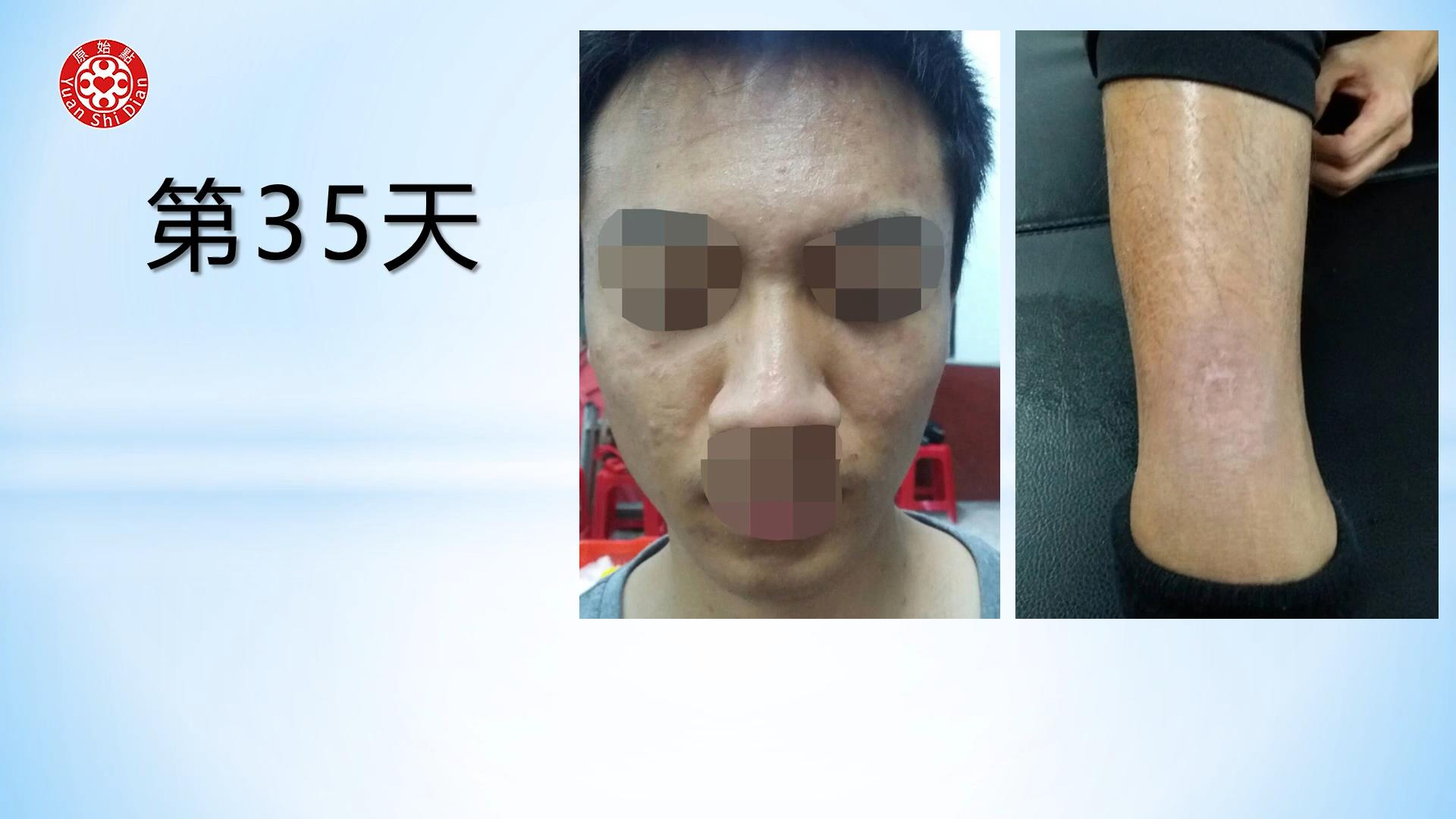3月14日以原始点方式处理4天后,身上红肿情况改善,程度减轻