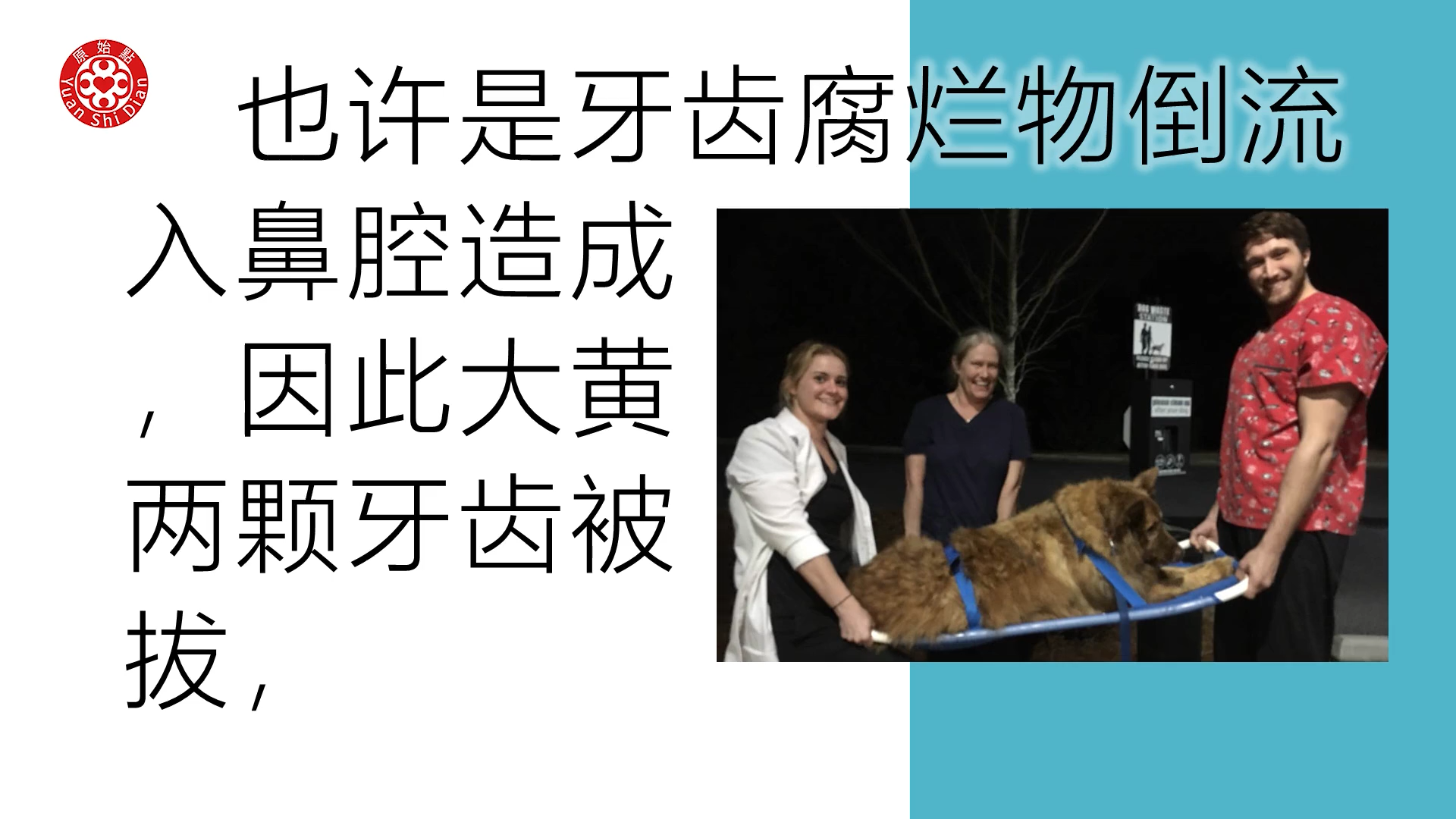 也许是牙齿腐烂物倒流入鼻腔造成,因此大黄两颗牙齿被拔,