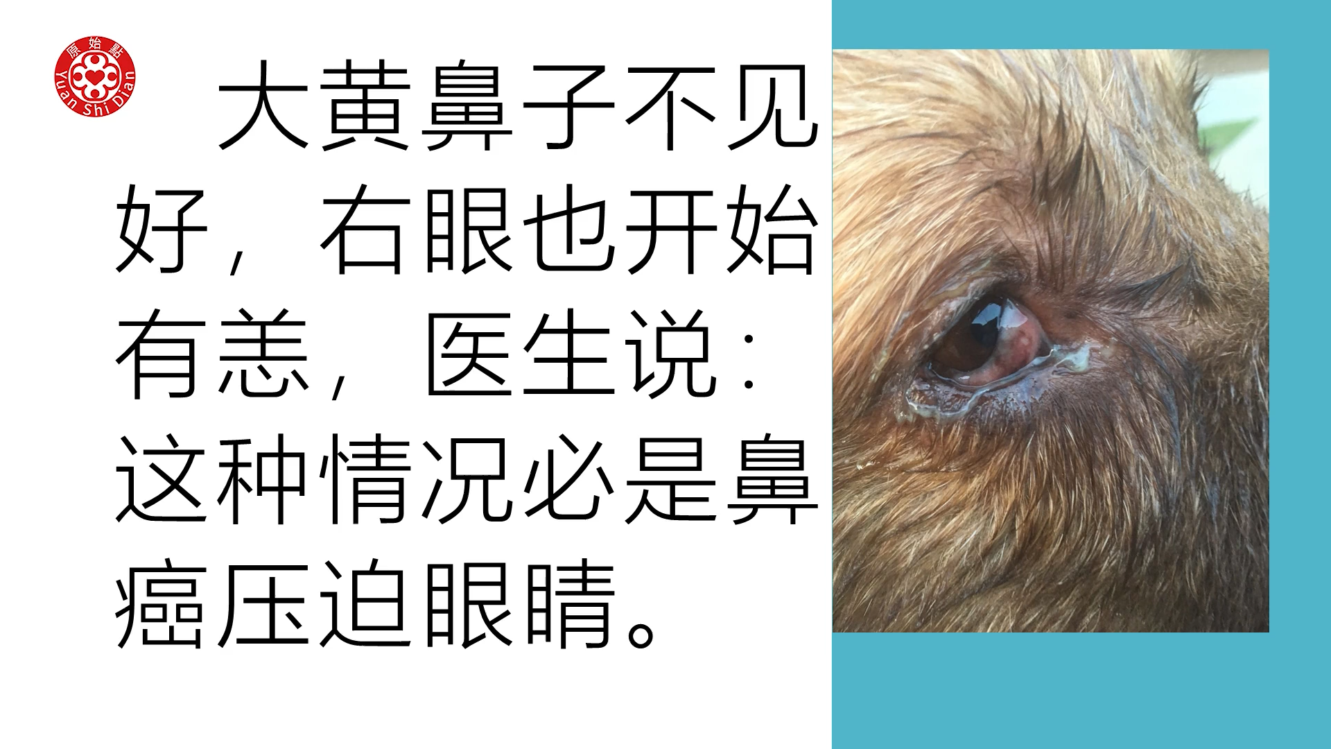 大黄今年7岁,2017年10月底天气严寒,大黄开始流鼻涕,吃感冒药至2018年1月底不见好转,鼻孔流出带血丝液体。