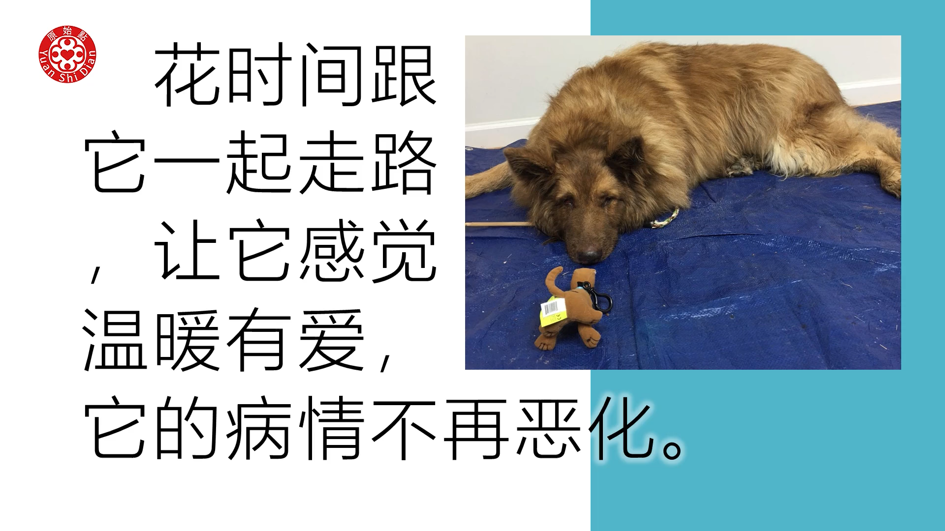 我们每天一点儿一点儿用手喂煮熟的食物,确定它吃下一些食物,花时间跟它一起走路1让它感觉温暖有爱,它的病情不再恶化。