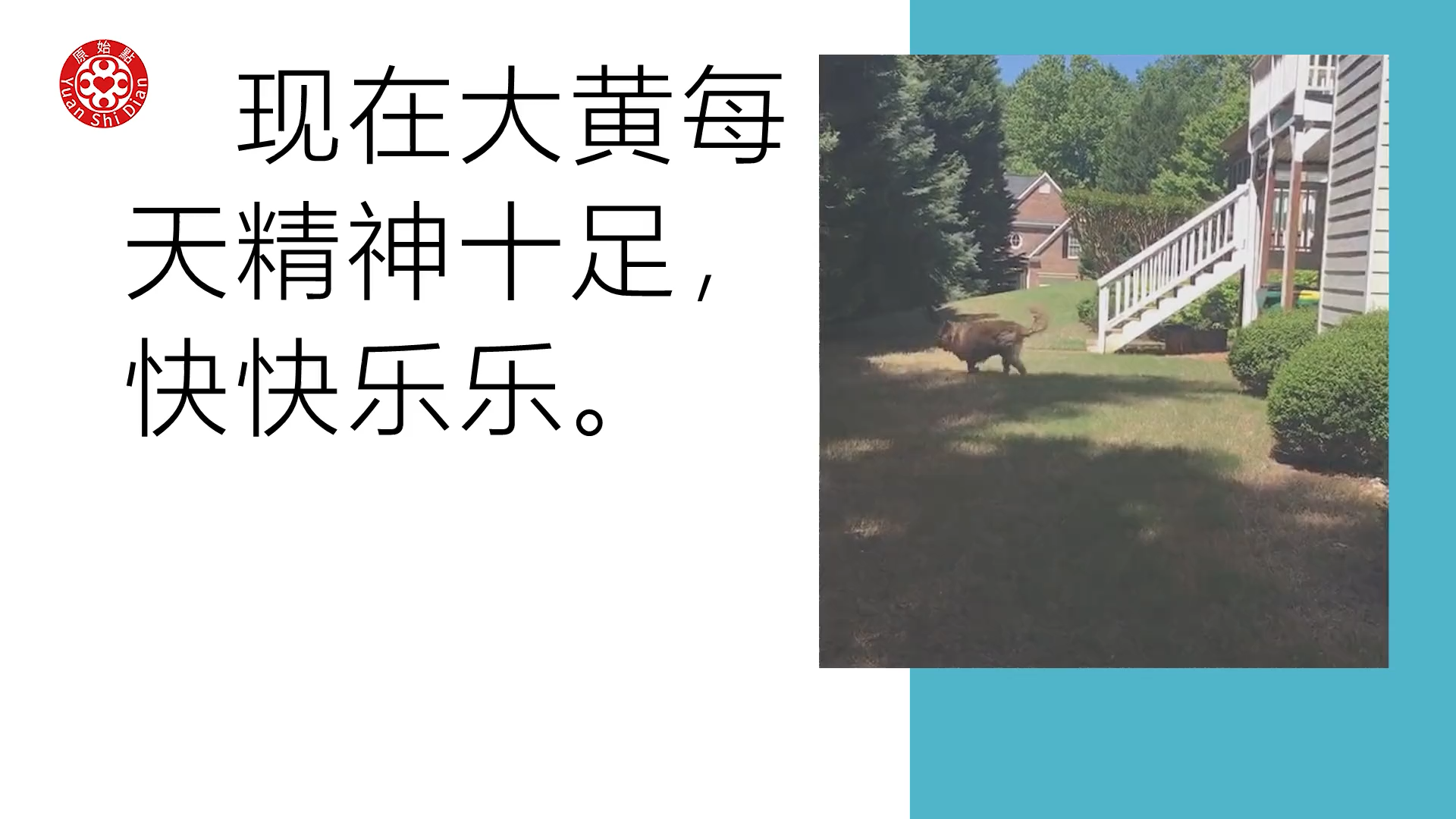 给它做原始点按推,红豆袋、暖贴温敷,经过几周调理,大黄的体力明显好转,食欲大增,看到改善家人都十分高兴。