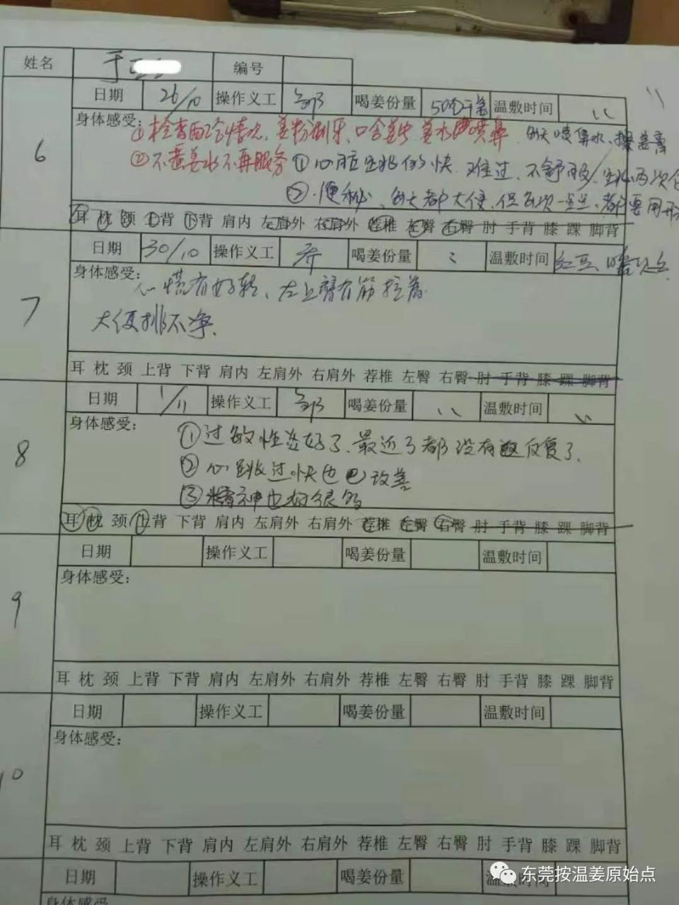 截止到2018年11月1号,于女士共接受原始点按推8次,内热源(姜粉或姜水),外热源(白天暖贴,晚上红豆袋),现改善情况如下: