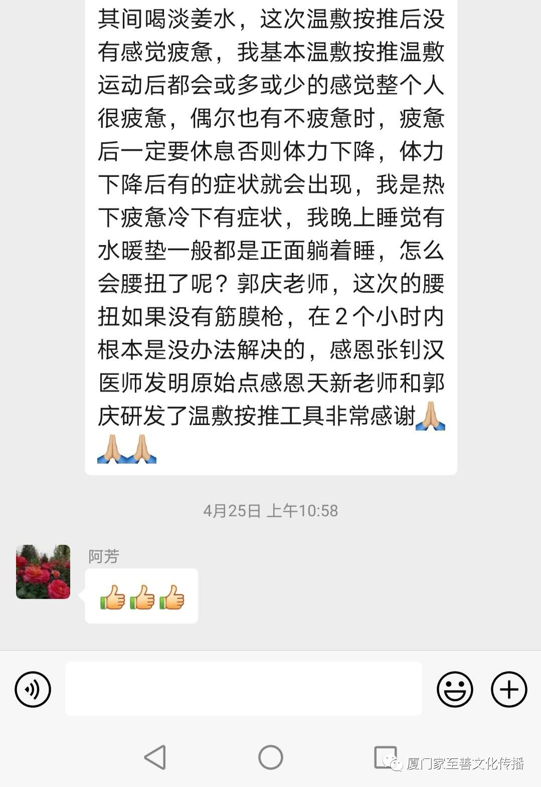 这位家人可以说是原始点的铁粉,对原始点可以说是非常地信任,全身上下都有毛病,这些年都是通过自己一点一点处理,经常会反复出现症状,但是一点也没有放弃,很多家人用姜汤洗眼睛能坚持一个星期就已经很不错了,但是她可以连续坚持半年时间,在她的身上发生很多案例,用她的话说她是真的从内心感谢原始点,也感谢天新老师和郭庆老师研发了按摩枪,能让她这么快时间能解症,她每次分享都会情不自禁的想落泪,如果没有原始点,她不知道她的身体会变成什么样,除了感谢还是感谢!