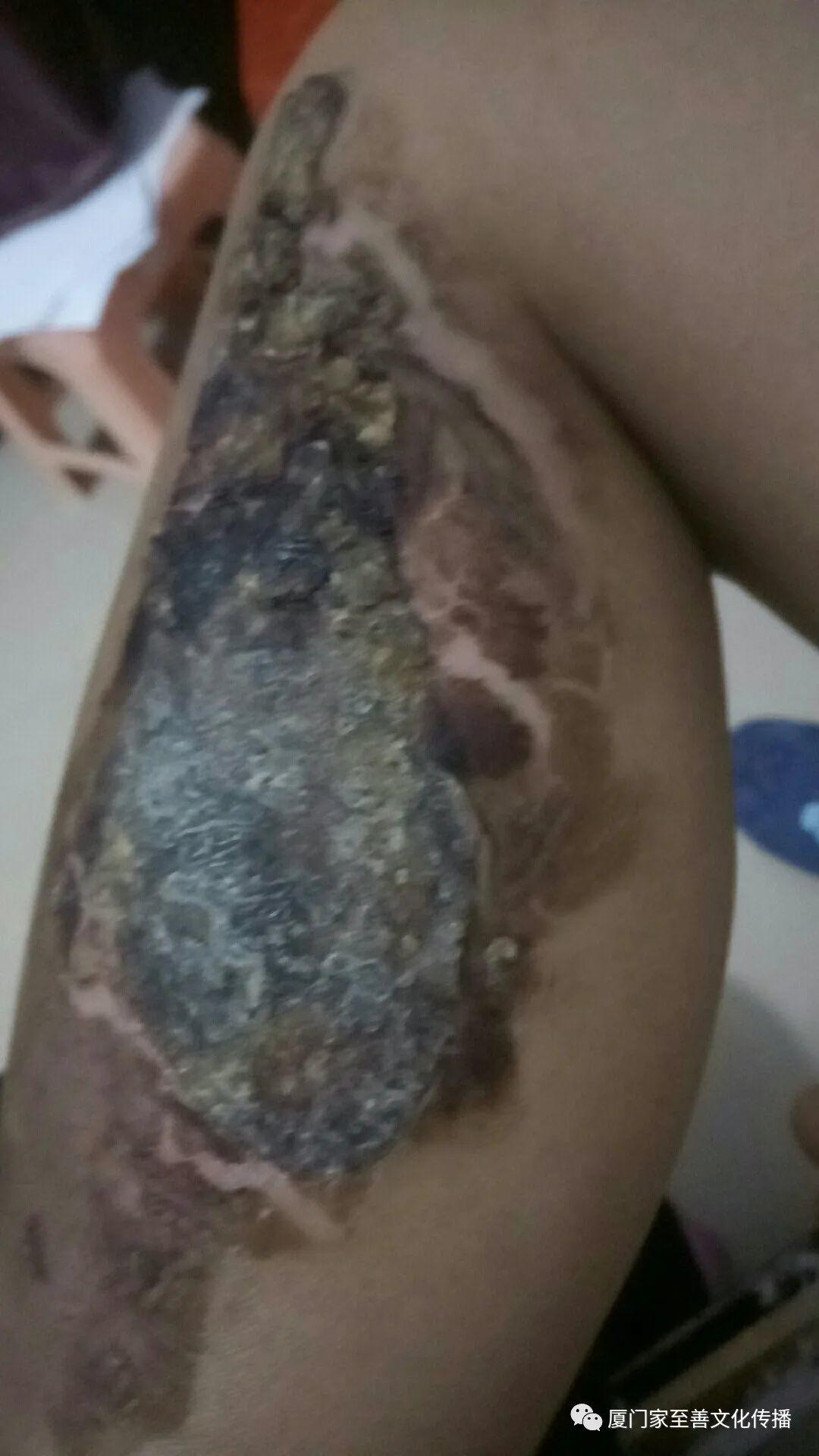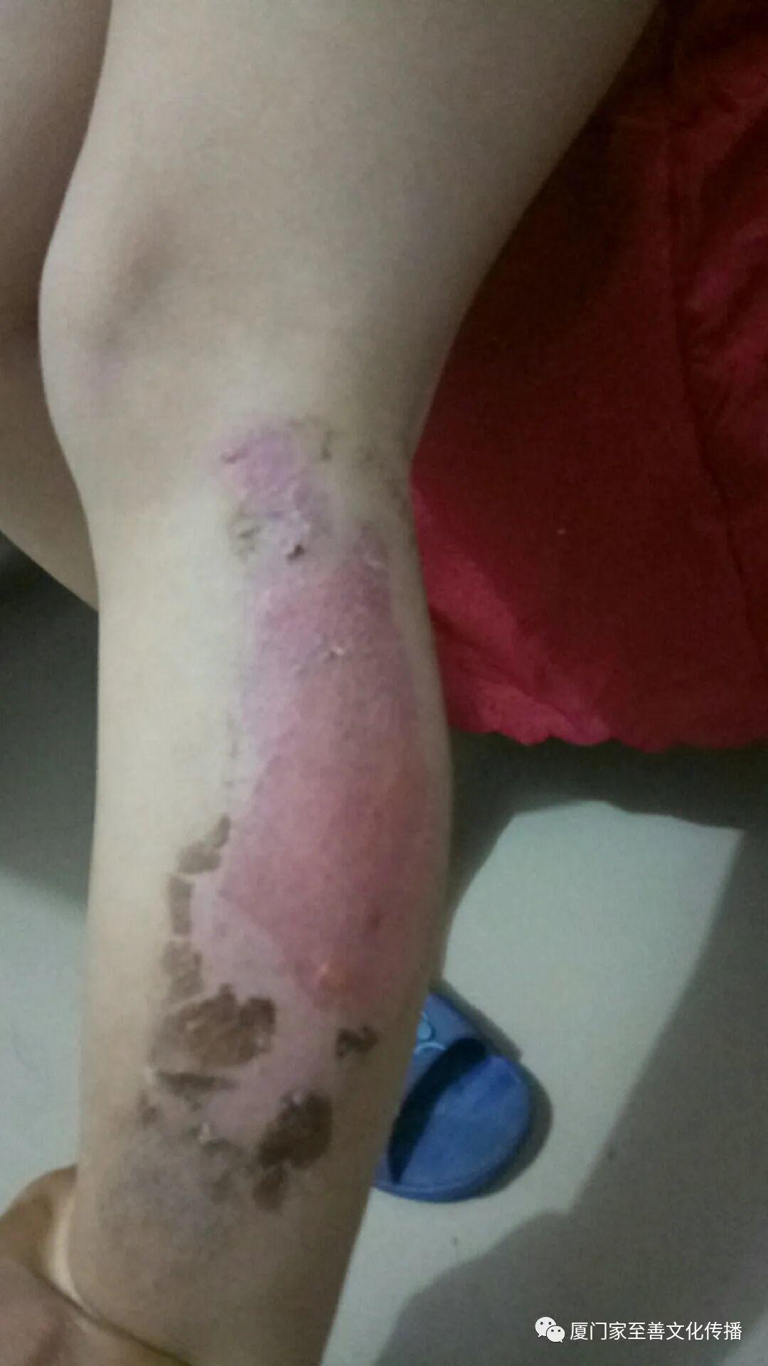 大家好!我是第一期的学员美霖。2020年4月26日早上我儿子在篮球场运动时,脚被保温壶的开水烫伤,一开始马上给他裤腿卷起来发现整块皮脱落,才知道问题的严重性。
