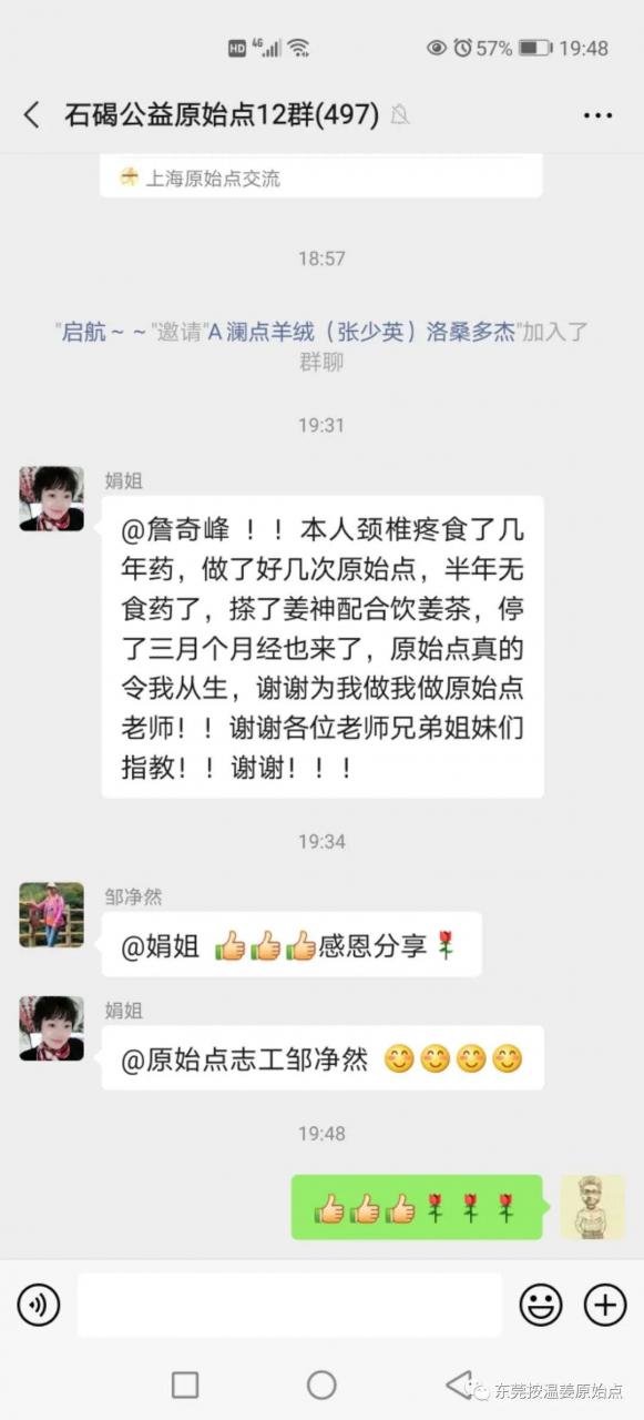 本人颈椎疼食了几年药,做了好几次原始点,半年无食药了,擦了姜神配合饮姜茶,停了三个月月经也来了,原始点真的令我重生,谢谢为我做原始点的老师,谢谢各位老师兄弟姐妹们指教。