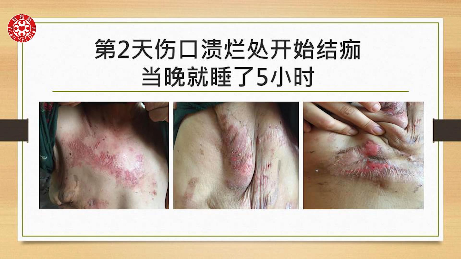 第2天伤口溃烂处开始结痂当晚就睡了5小时