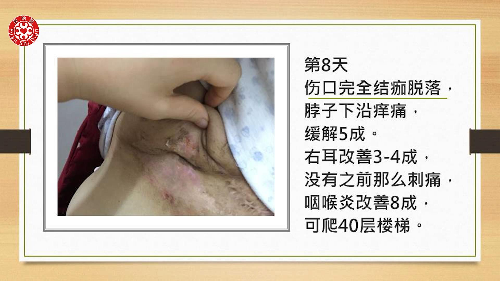 第8天伤口完全结痂脱落·脖子下沿痒痛,缓解5成。