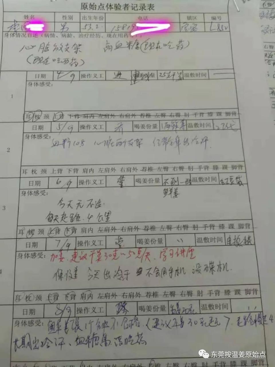 爱好运动的李先生在原始点调理的过程中一直非常配合,每天坚持走路3~6公里,每天坚持打篮球半小时以上,就连上楼梯也很少坐电梯,坚持步行上楼,每天坚持喝姜水(煲干姜片25~30克2道),白天红豆袋、晚上睡水暖床,做到长时间温敷,平时不吃水果等寒凉食物,温热饮食,截止到2018年11月18号李先生原始点共按推57次,现改善情况如下: