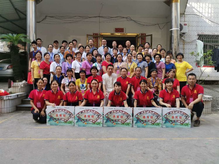 各组上台自我介绍后,喊口号,俺们组的口号最响亮,(齐家1组,齐心协力,学好原始点,健康全家人)