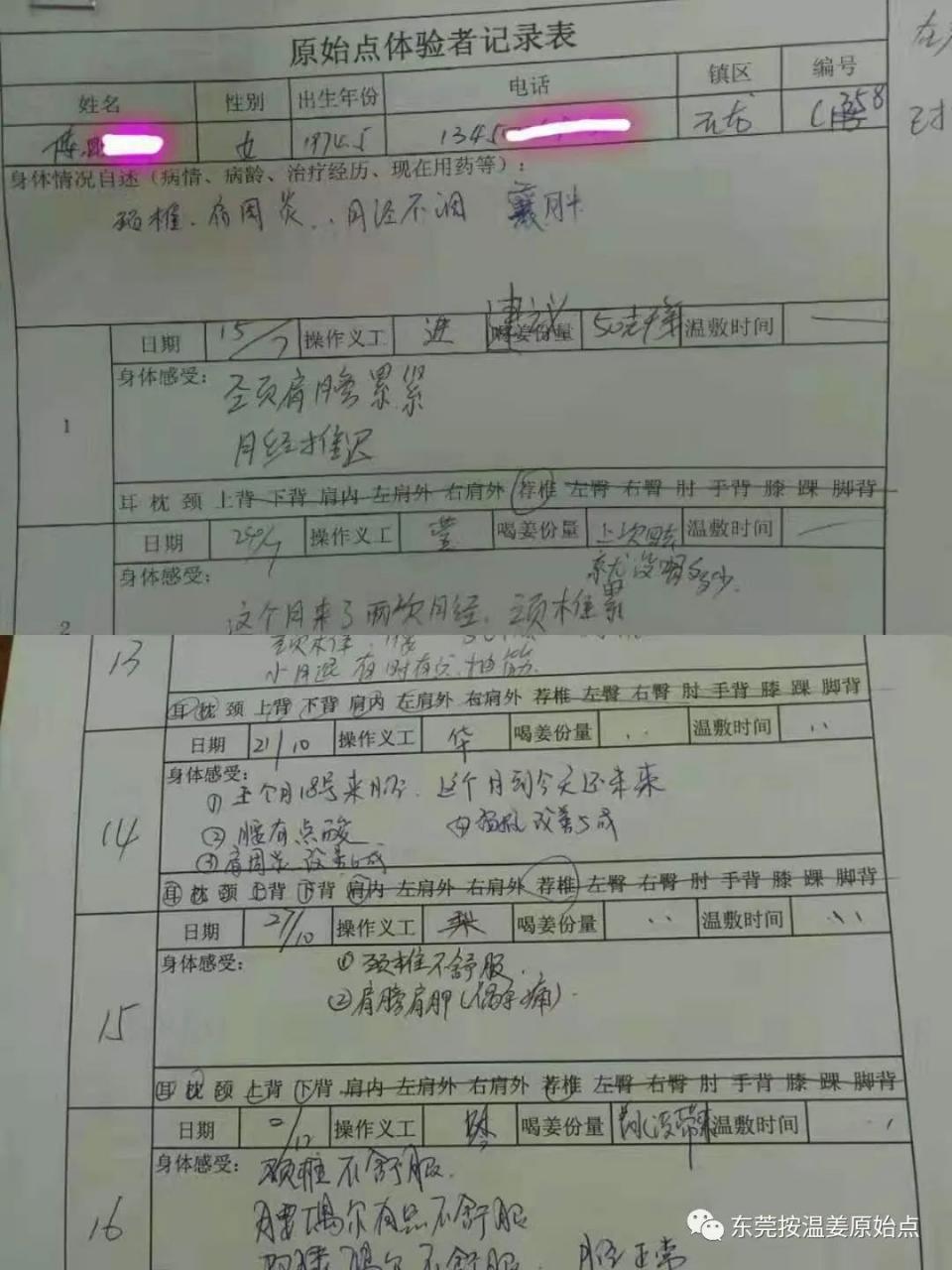 陈女士,44岁,广东惠州人,颈椎病二年(时常会颈椎痛),今年严重点,曾做过10次针灸,效果不是很理想,肩周炎一年多,月经不调多年,2018年7月15号经朋友介绍结缘原始点,截止到2018年12月2号原始点按推共16次,陈女士说工作原因不能经常来,但每天都会坚持喝姜水(煲50克干姜,煲2道),也会每天暧贴温敷,晚上偶尔还会睡电热毯温敷,平时会爬楼梯、也会散散步运动一下,陆续调理了三个多月,现改善情况如下: