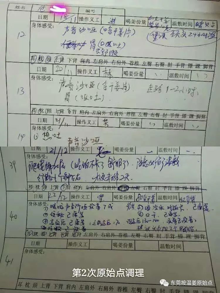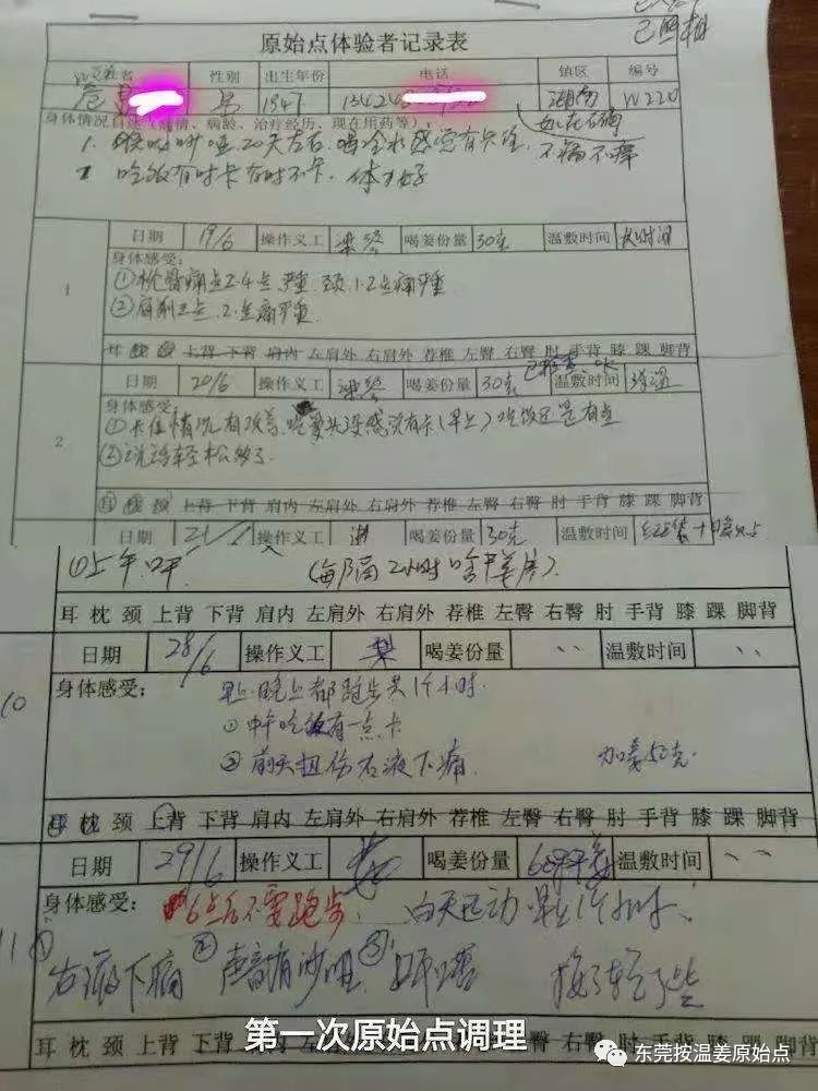 危先生在原始点公益中心调理期间,志工曾多次交待危先生原始点痛点要长时间温敷,24小时口含干姜片,但危先生并不怎么配合,也不太相信原始点能调理好自己的身体,并在2018年6月29号放弃原始点调理决定回家,截止到6月29号危先生原始点按推共11次,改善情况如下:
