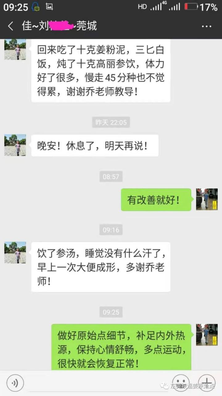 6号晚上刘女士发来信息说自己能吃米饭了,体力有好转,很开心!7号早上刘女士又发来信息,说昨晚没怎么出汗并且早上排便成形,愿原始点能够帮助更多的人走在健康的道路上!