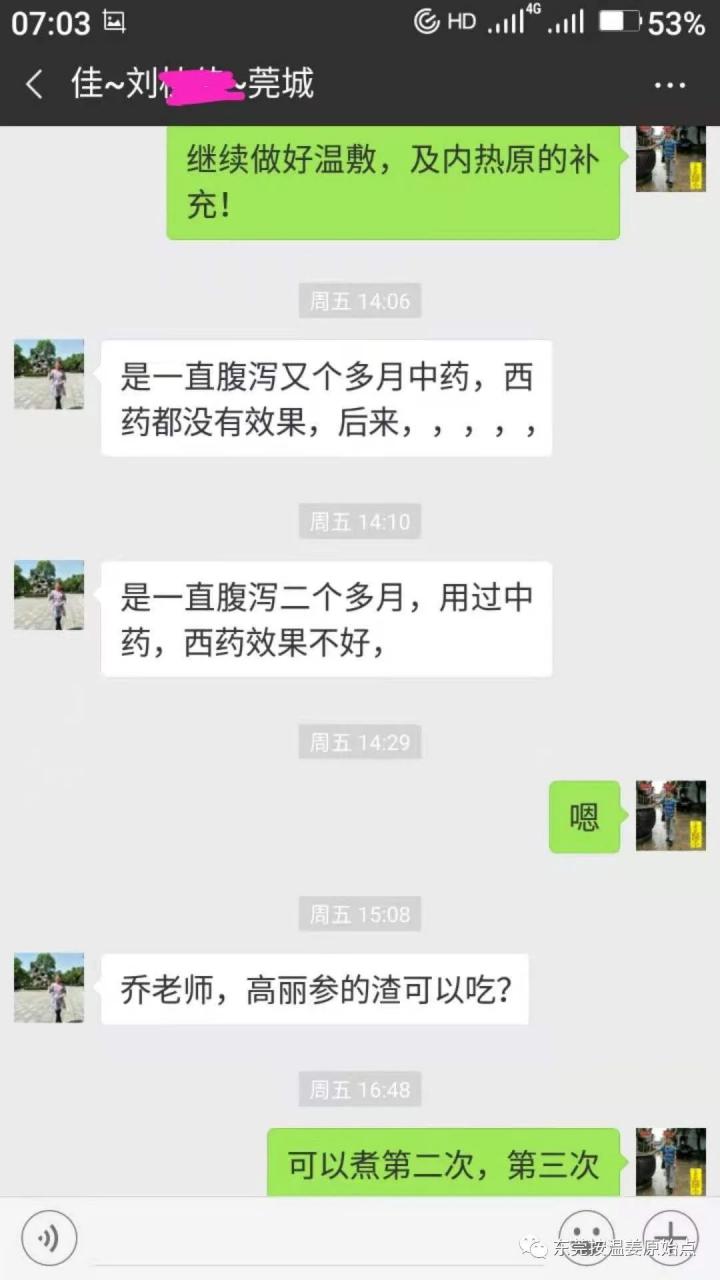 12月6号经朋友介绍来到了石碣公益原始点,寻求帮助。介绍完情况后我就为刘女士按推、温敷。建议刘女士煮50克干姜加20克红参,并餐后食姜粉5--10克,并叮嘱加强温敷。
