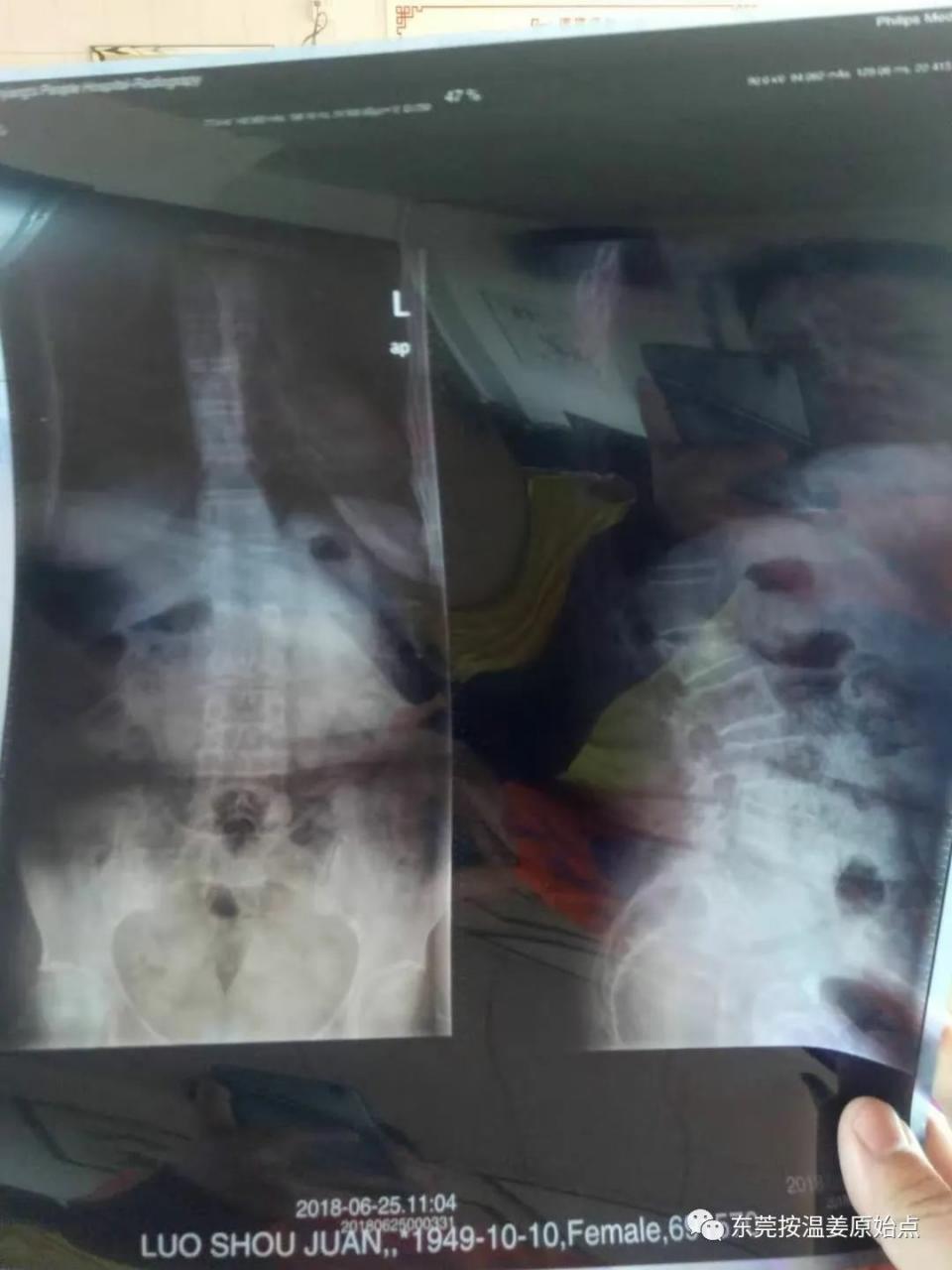 罗婆婆,68岁,东莞石碣人,2018年6月25号因经常腰痛去医院检查,影像表现:胸腰段序列连续,曲度后凸,L1椎体压缩变扁,各椎体边缘变尖,各椎体间隙未见明显变窄。影像诊断:L1椎体压缩性改变,腰椎退行性变,曲度后凸。