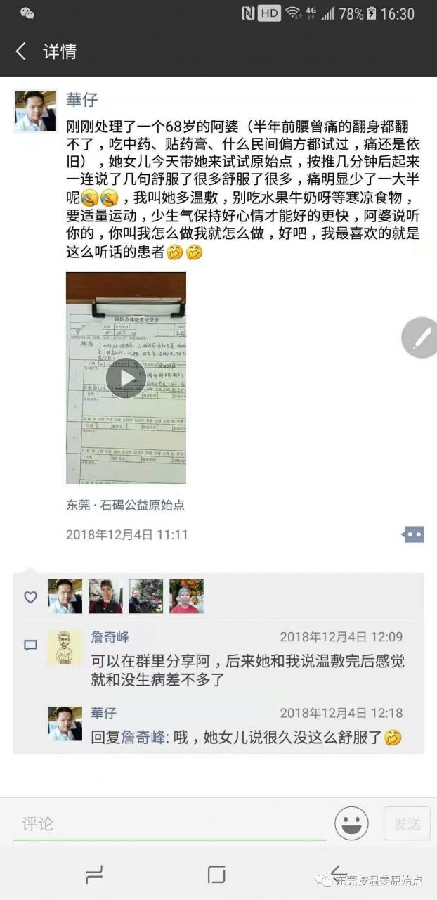 2018年12月4号,罗女士经亲人介绍结缘原始点(石碣公益原始点编号L1059),刚来时症状:腰痛(有时痛的翻身都翻不了)、双膝盖痛多年。