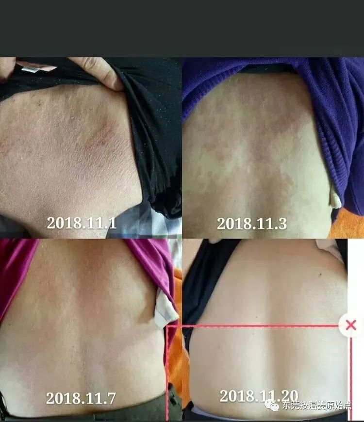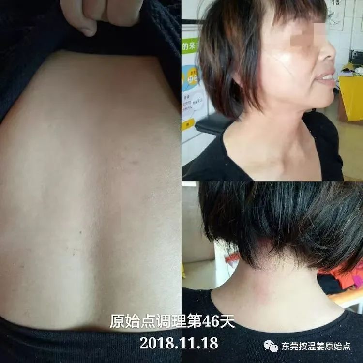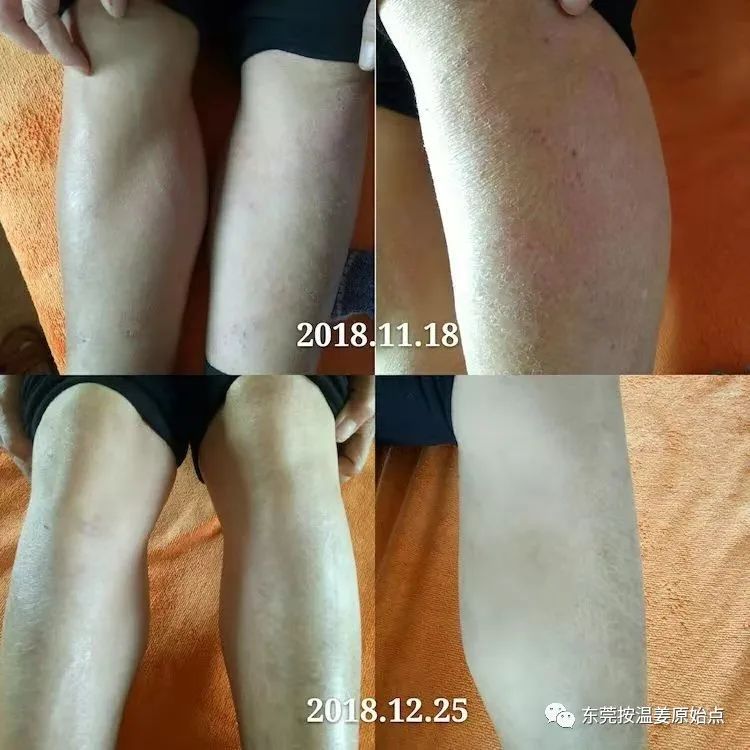 截止到2018年12月25号,危女士原始点按推共34次(皮肤康复后,一个月有时间来公益中心原始点按推1~2次,平时在家会喝姜水,外涂姜膏,偶尔也会敷下姜泥),现改善友情如下:
