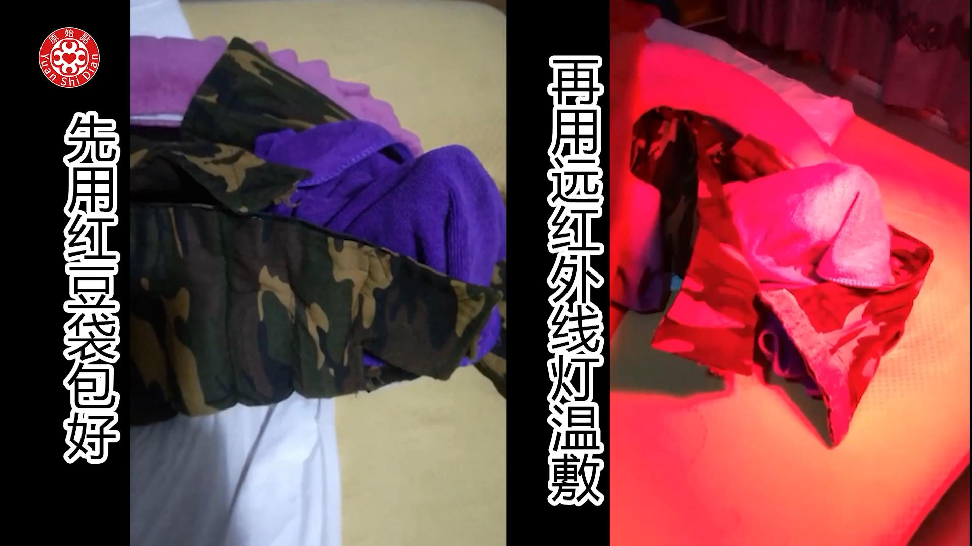先用红豆袋包好 再用远红外线灯温敷