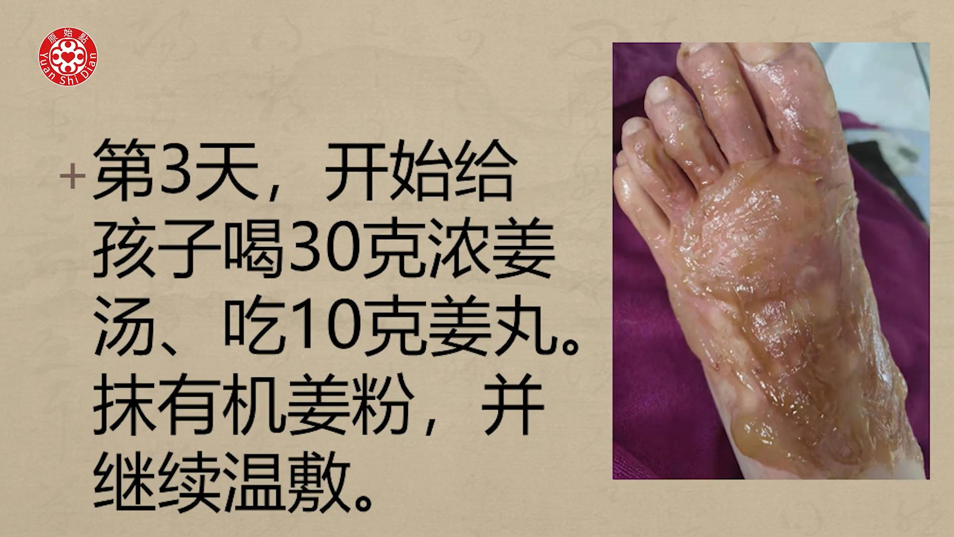 第3天,开始给孩子喝30克浓姜汤、吃10克姜丸。