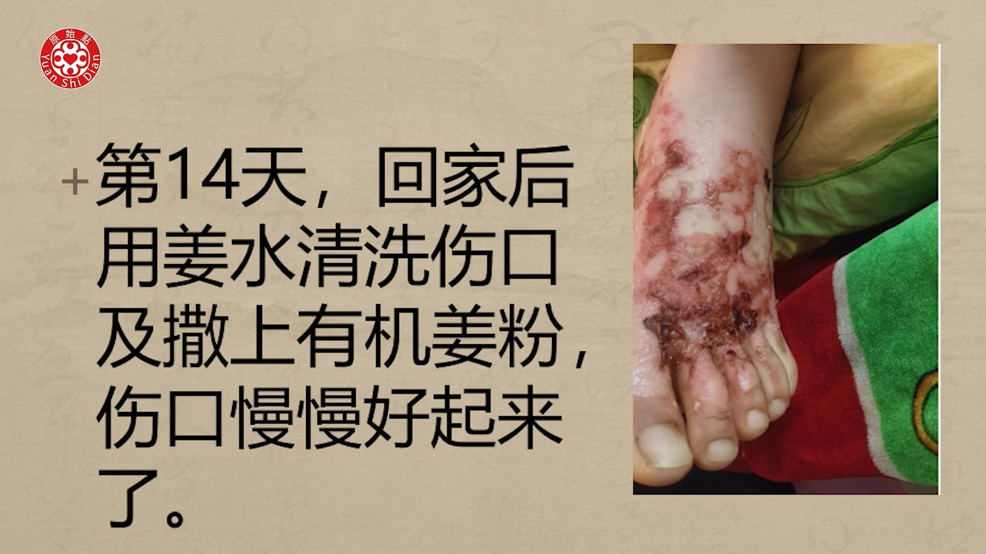 第14天,回家后用姜水清洗伤口及撒上有机姜粉,伤口慢慢好起来了。