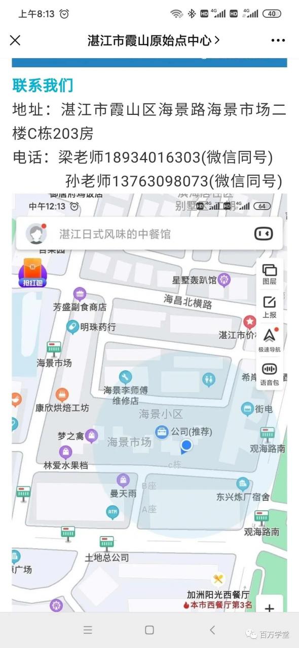 地址:霞山原始点中心(湛江市霞山区海景路海景市场二楼C栋203房)