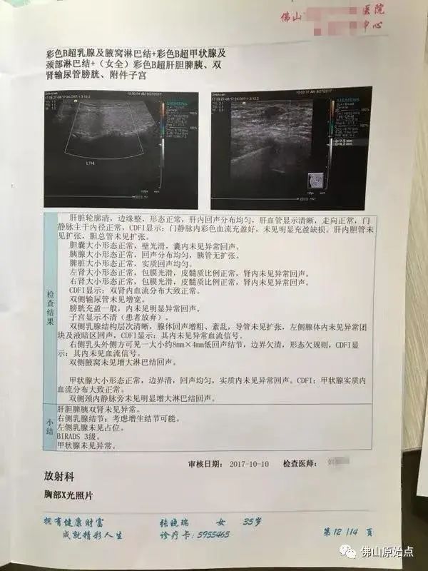 这几年乳房总会时不时的刺痛感,2017年10月10日在佛山市某人民医院体检,B超结果显示右侧乳房外侧有一个8X4MM大小的结节,医学上称BIRADS3级。