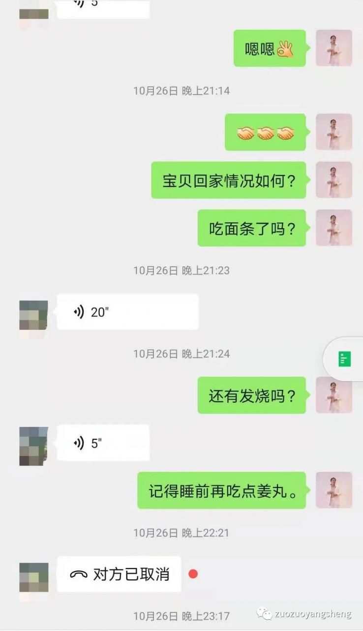 只是,当时疫情管控特别严,进入我们小区需要量体温,当时宝贝发着烧,在大门口被保安拦着不让进。丁先生无奈的打电话给我,沟通的结果是让他接小星老师去他们家里给宝贝调理。