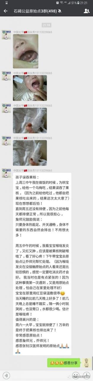 周五中午的时候,我看宝宝喉咙发炎了,又红又肿,应该是被果核刺破喉咙了,看了好心疼!下午带宝宝去原始点让乔师兄帮忙处理。(因为喉咙发炎在没接触原始点的人看来还是比较恐惧的,感觉一定要吃消炎药才会好。我当时也是有点紧张的!因为这种事情第一次遇到,又是用原始点处理,怕自己在家里处理不好)。