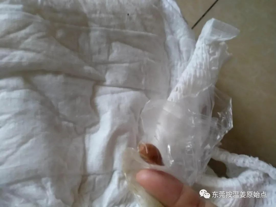 宝宝在那里用红豆袋温敷很乖,当天睡的比前几天晚上好多了!前几天晚上总是睡不踏实,隔一俩小时就哭闹,也没胃口,水都很少喝。估计是喉咙疼!值得高兴的是:周六一大早,宝宝就排便了!万幸的是终于把果核也排出来了!