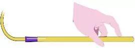 ①将鼻胃管或灌肠管插入肛门, 鼻胃管约40 ~ 50 cm, 灌肠管约30 cm。操作者戴上一次性手套,并于末端涂上凡士林或香油。用拇指与中指掐住末端约5cm处,两指轻推将鼻胃管或灌肠管置入肛门,此时鼻胃管或濯肠管因受力会弯曲,用食指轻轻压挤弯曲处以方便鼻胃管或灌肠管顺利进入肛门,也可做肛门收缩动作(提肛) 更能顺利进入肛门。