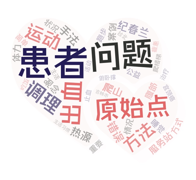 我每天帮她改变错误生活习惯,正确认识原始点,每天帮她按推全部原始点(除了四肢以外)同时还按推腹部、腹股沟、耻骨,每天一边按推一边温敷,一定把她敷透才结束,基本上是属于热敷,下面铺上电热毯,上面盖红豆袋,还盖被子,晚上睡觉也是温敷式的。只要有一点体力都要活动,爬楼梯,俯卧撑,拉筋,活动所有关节,爬山,跑步都做。