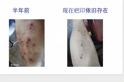 要不然那个组织液很黏呐,一旦结痂了,就会很痒。甚至还会脱落而再一次,再流出血组织液来,这样反复会拖的蛮长,甚至就像这位志工他分享,会留下疤痕。