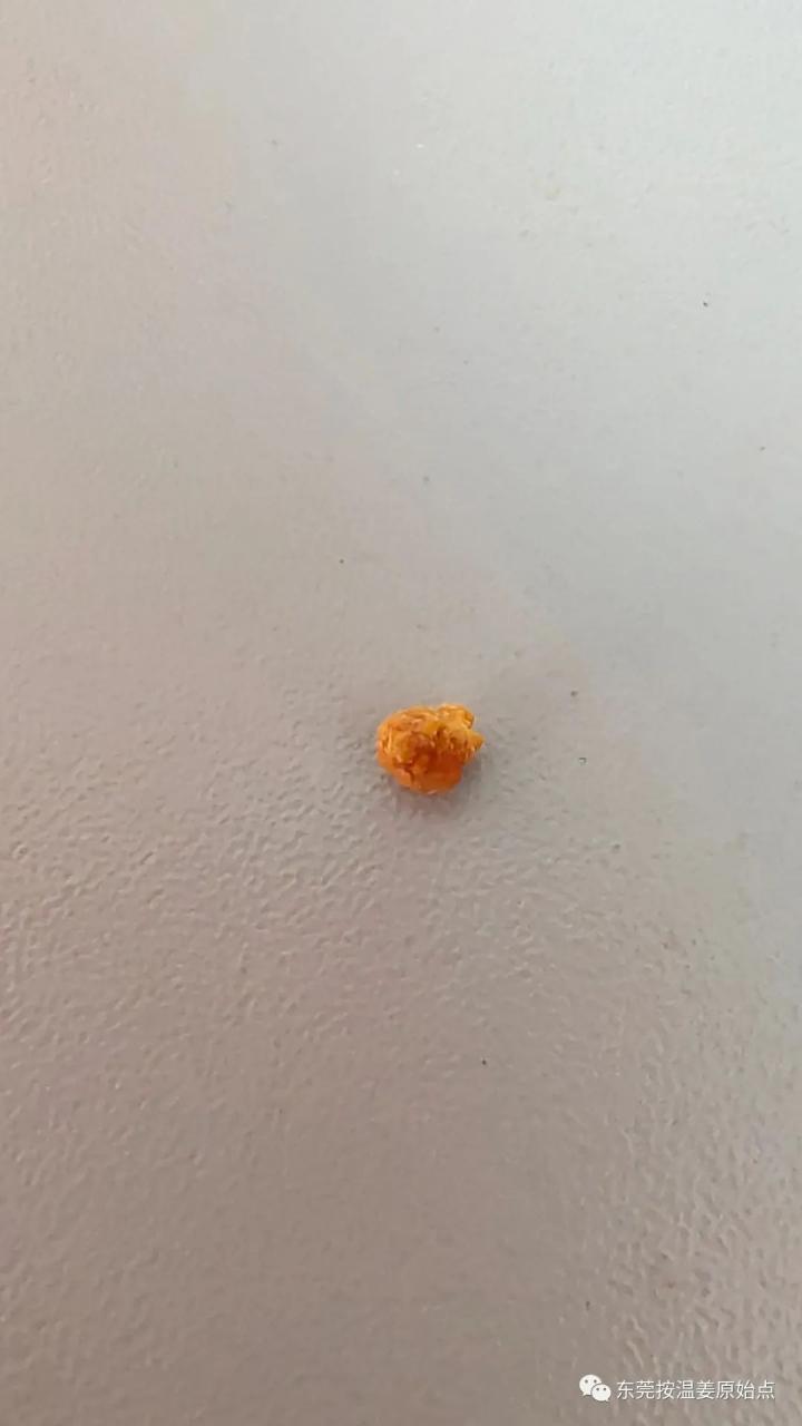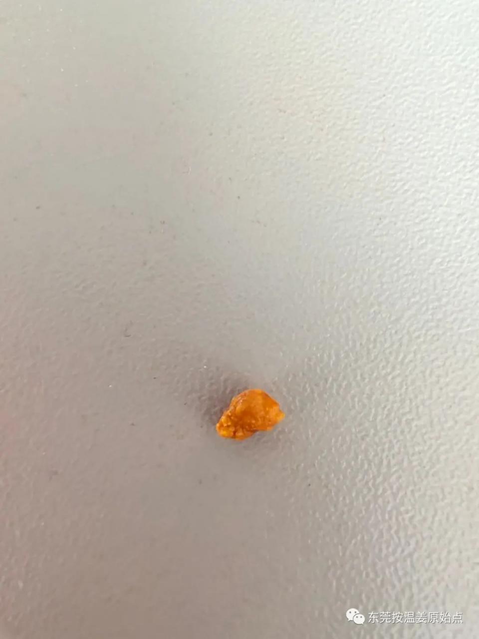 本月2号下午我腰椎左侧有点不舒服,当时不在意,以为温敷下便会好,到傍晚时有点腰痛及小腹左边有点隐隐作痛,因为有之前的经历,我意识到是结石痛,于是马上叫麦师兄帮我按推了下背部及荐椎原始点。上次4月份时也是这样痛的,叫梁师兄帮我按推了下背部及荐椎原始点,喝浓姜参汤,然后温敷,当天拉五粒结石,与大米一般大小,第二天又拉了一粒。我想这次可能也要排结石,于是,马上回房煲浓姜参汤喝,整晚保持温敷状态,第二天(3号)起来,还是有点隐隐作痛,且拉血尿(尿中带血),我又叫梁师兄帮我按推下,过了一阵上厕所,果然拉出一粒米大小的结石,但小腹还是隐隐作痛,我知道里面还有结石,于是整天温敷,终于在4号凌晨又拉了一粒结石出来,身体也舒畅起来了,5号还去了佛灵湖爬山,感觉就更好了。