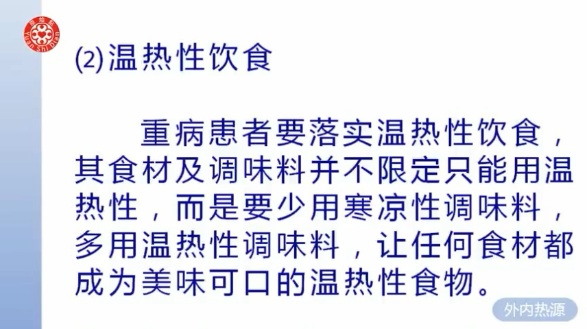 重病患者要落实温热性饮食,其食材及调味料并不限定只能用温热性,而是要少用寒凉性调味料,多用温热性调味料,让任何食材都成为美味可口的温热性食物。