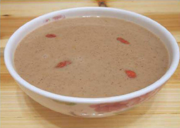 把五縠米、核桃、巴旦木、腰果、红枣放入过滤网用清水冲洗干净,红枣去核,放入豆浆机,加水、姜粉,煮熟即食。