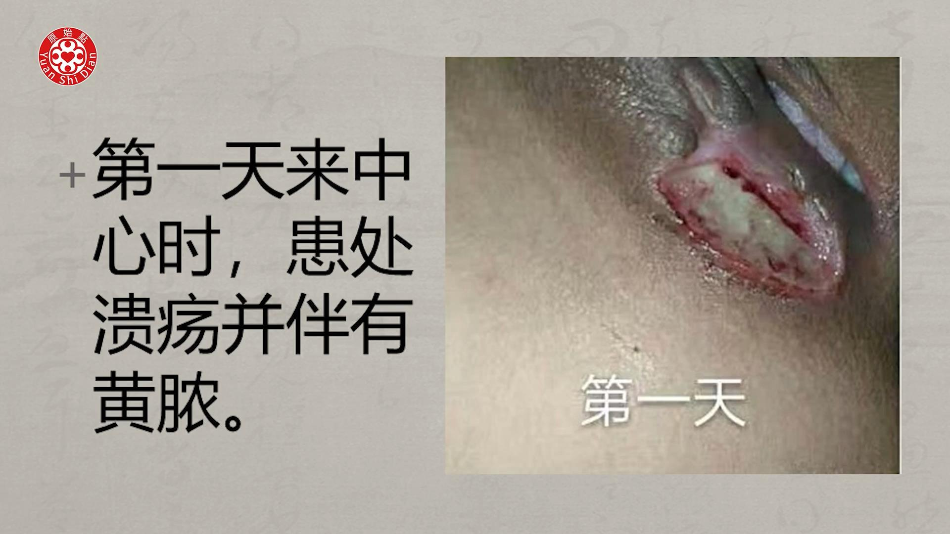 第一天来中心时,患处溃疡并伴有黄脓。