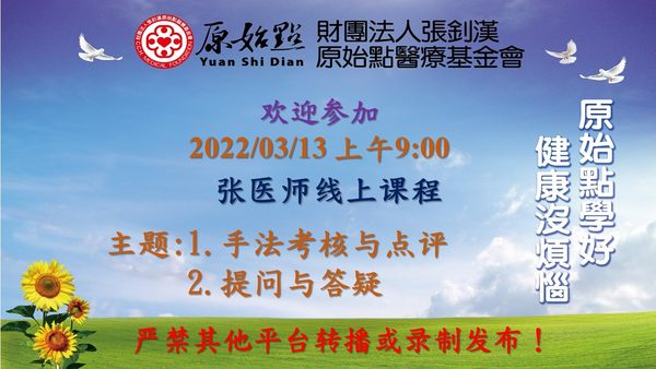 2022年03月13日周日上午9:00-11:00(北京时间)直播张医师线上课程“手法考核与点评 提问与答疑”,欢迎大家收看。