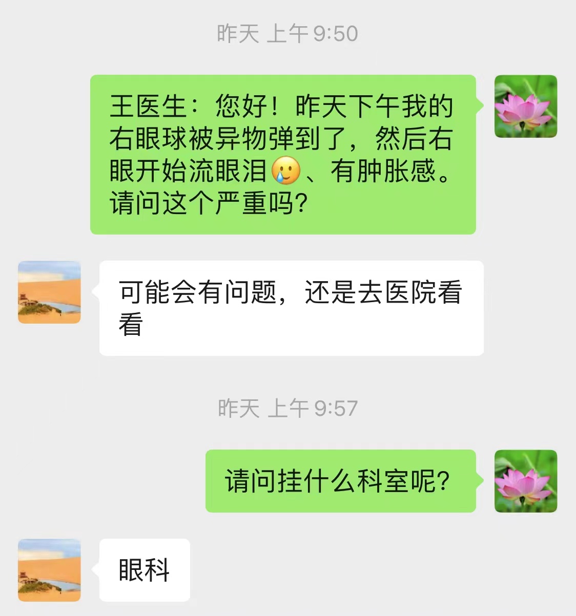 - 55. 右眼球被异物弹到后开始流眼泪,有肿胀感