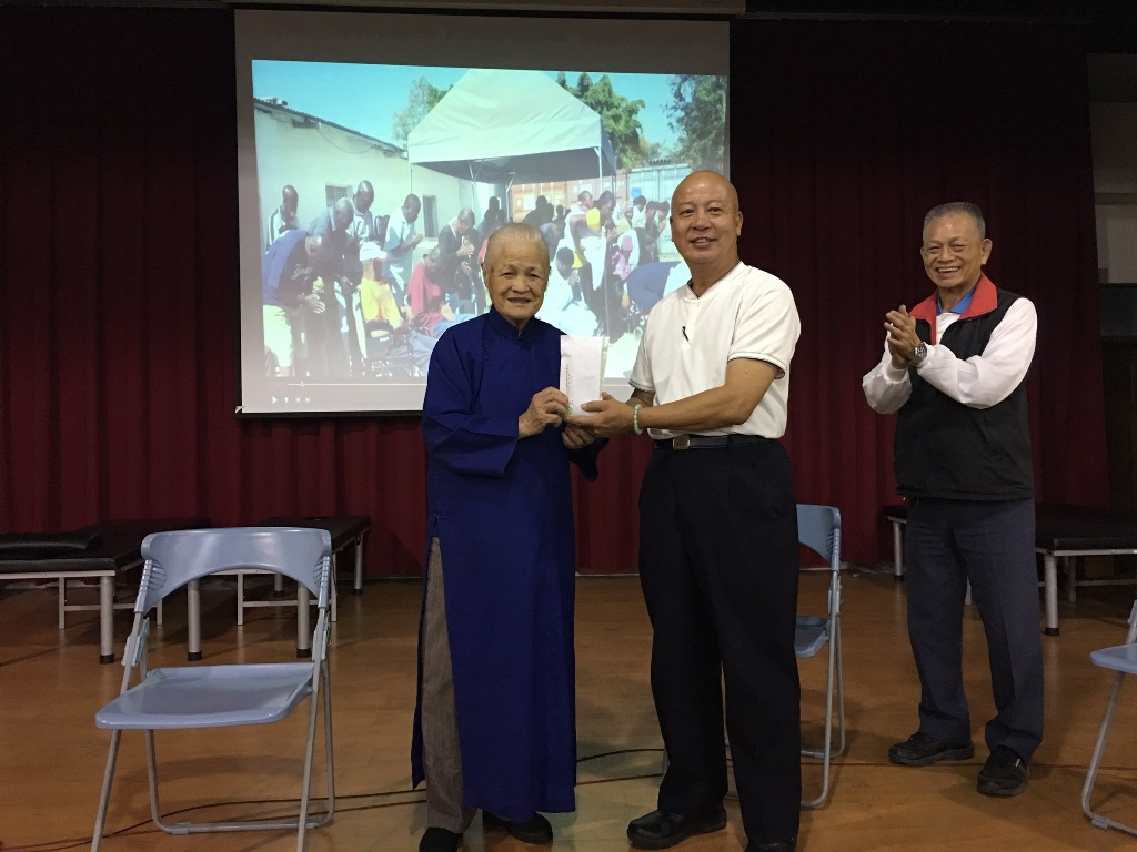 来自非洲穷困国家『辛巴威』,在慈济21个既有的按摩保健义工站,全心全力推广原始点保健疗法(以下简称「原始点」)的朱金财师兄,2016年11月19日下午,在台北张钊汉原始点基金会师兄姐陪同下,莅临埔里良显堂原始点调理服务处,给良显堂原始点志工们,分享近3年来在辛巴威施作原始点,调理服务当地病患症状的宝贵经验与心得。